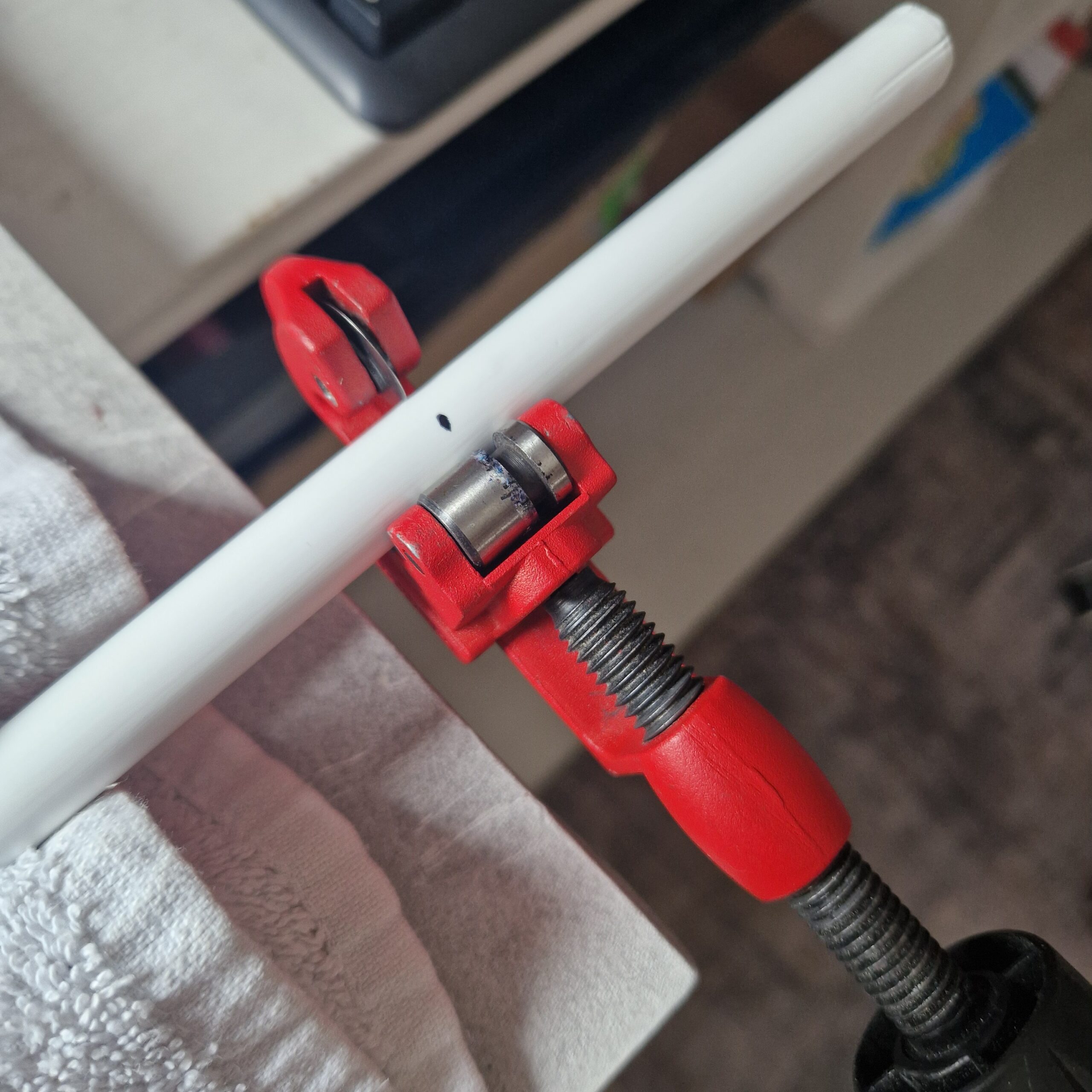 Gebruik een pijpsnijder om de stang op de juiste lengte af te snijden. Geen pijpsnijder? Dan is een goed ijzerzaagje ook prima. Let op dat je recht snijdt voor een mooi resultaat.