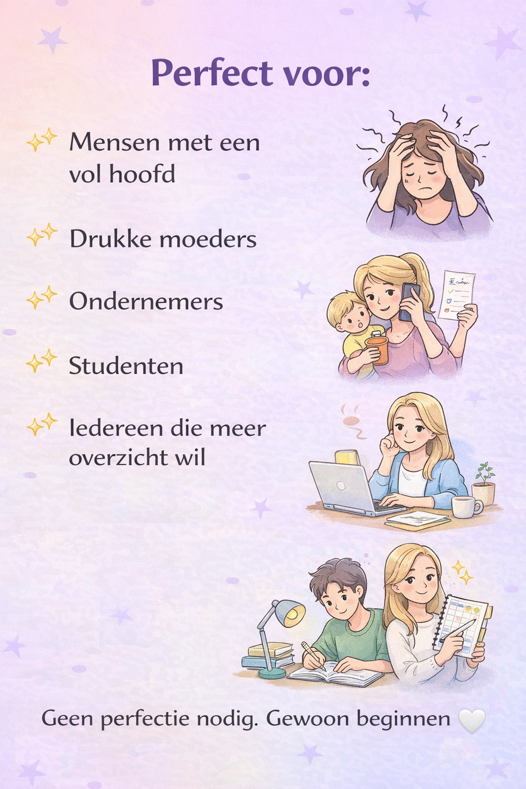 een praktische, rustige en overzichtelijke planner die jou helpt om grip te krijgen op je dagen, zonder ingewikkelde systemen.