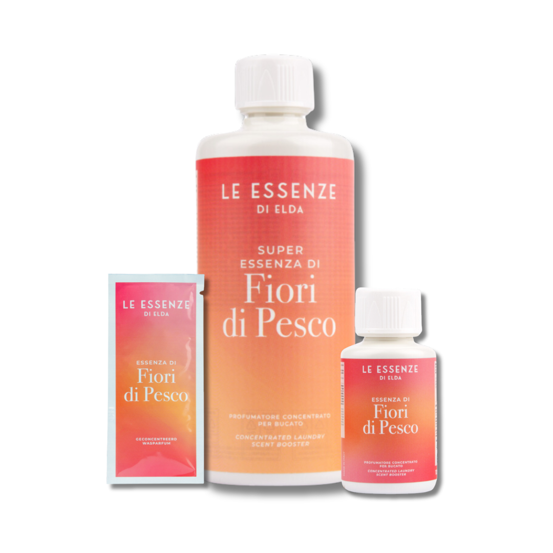 Elke druppel Pesco wasparfum is doordrenkt met de verfijnde aroma’s van de Italiaanse natuur, waar de perzikboom gedijt en zijn weelderige bloesems de lucht vullen met hun bedwelmende geur. Dit is geen gewoon wasmiddel; het is een symfonie van geuren die je wasgoed omhullen en transformeren tot een bron van pure verwennerij.